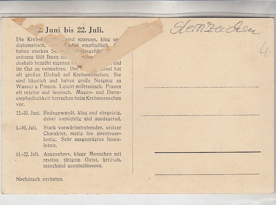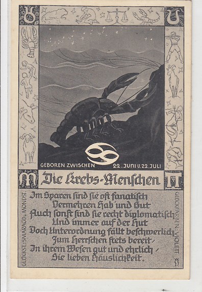Sternzeichen AK Ansichtskarte Sternbild Krebs