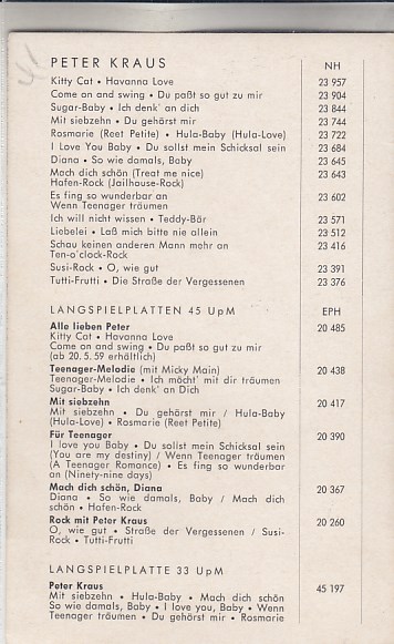 Original Autogramm Autogrammkarte Musiker Sänger Peter Kraus polydor