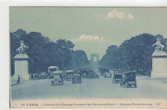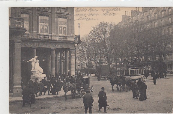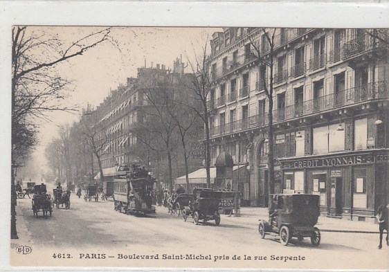 Paris Frankreich Saint-Michel Autos und Strassenbahn ca 1910