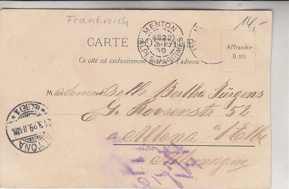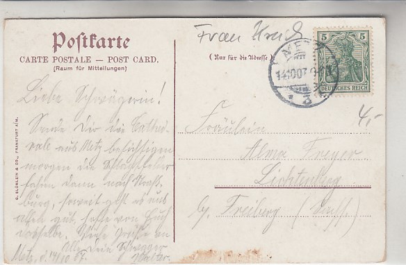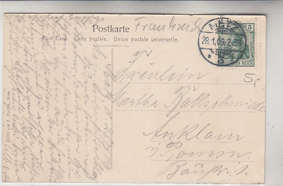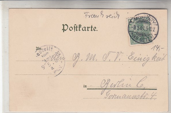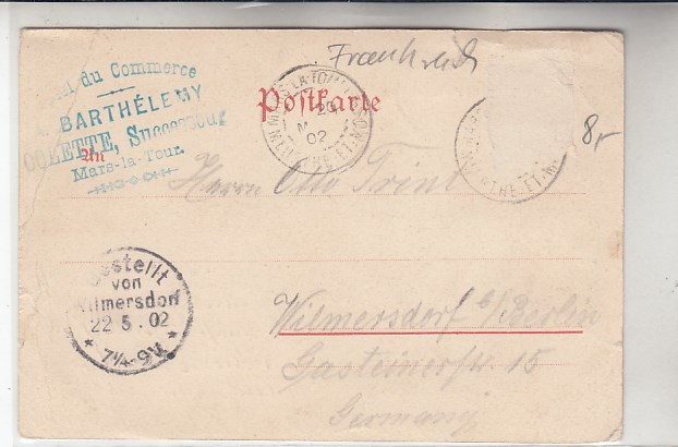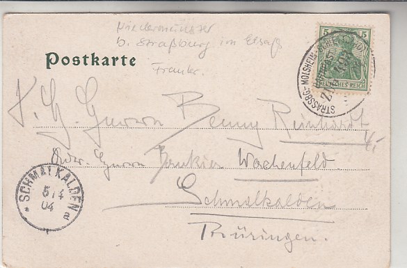 Niedermünster Frankreich Niedermunster Elsass Elsaß bei Strassburg Bahnpoststempel 1904