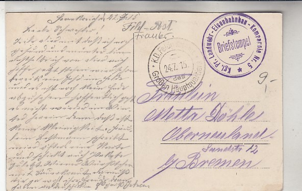 Comines Frankreich Eisenbahn 1916