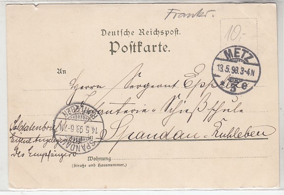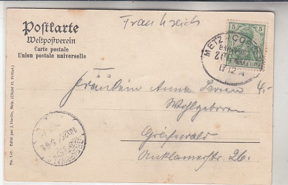 Metz Frankreich Militär Parade Bahnpoststempel 1904
