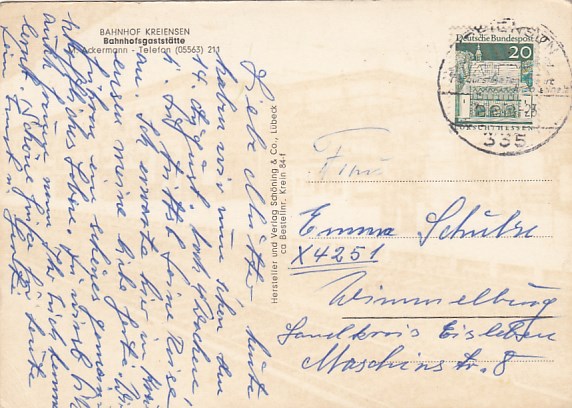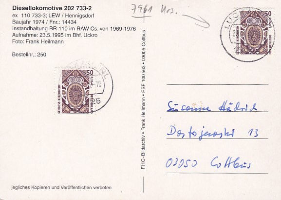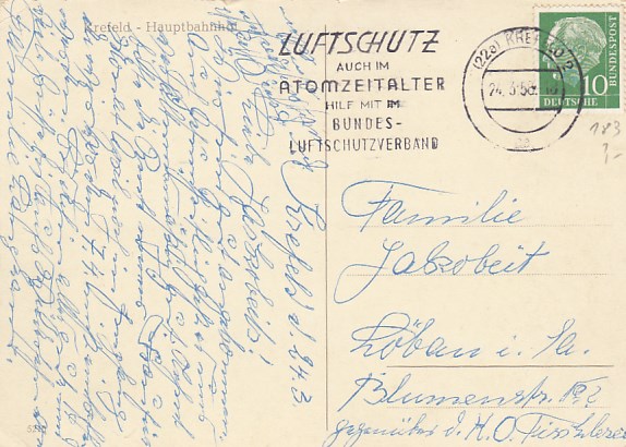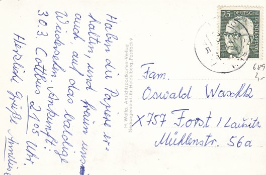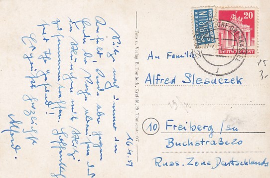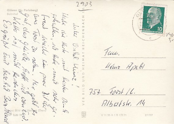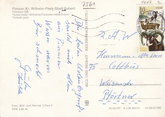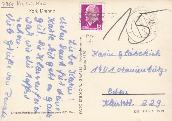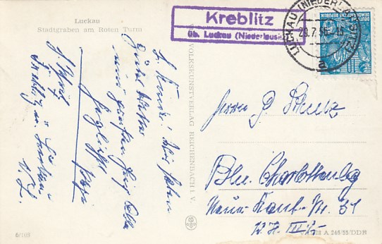 Luckau Niederlausitz Stadtgraben am Roten Turm Landpoststempel Kreblitz 1955