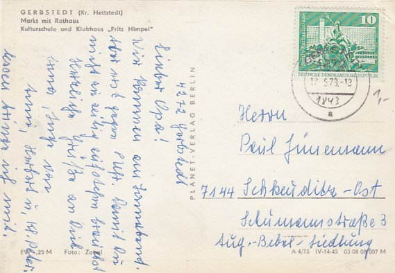 Gerbstedt ist eine Kleinstadt im Landkreis Südharz in Sachsen-Anhalt 1973