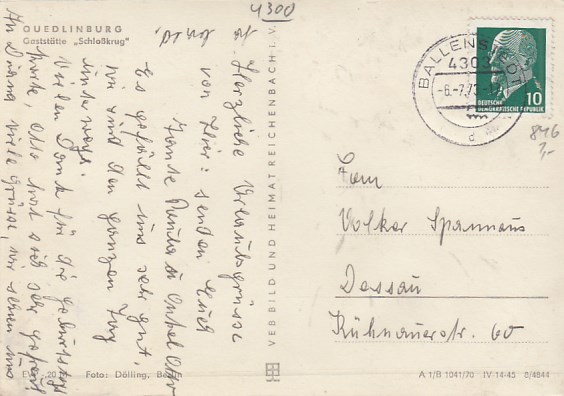 Quedlinburg Harz Gaststätte Schloßkrug 1970