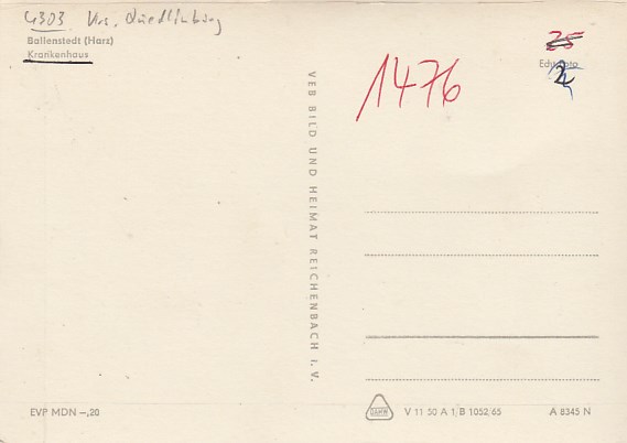Ballenstedt Harz in Sachsen-Anhalt Krankenhaus 1965
