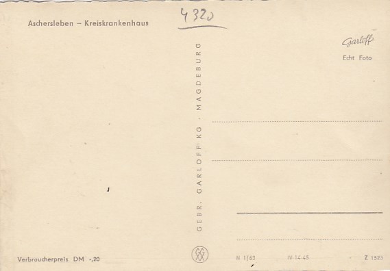 Aschersleben in Sachsen-Anhalt Krankenhaus ca 1950