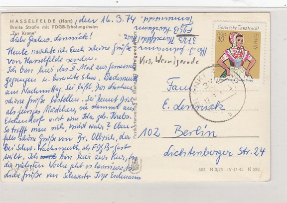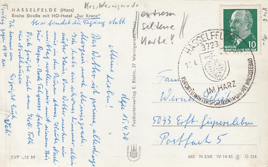 Hasselfelde im Harz Hotel Zur Krone 1974
