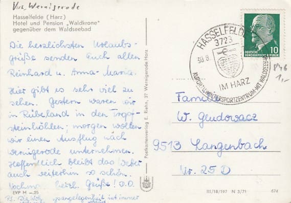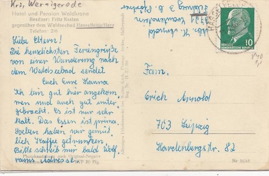 Hasselfelde im Harz Hotel Waldkrone 1971