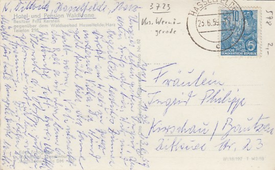 Hasselfelde im Harz Hotel Waldkrone 1956
