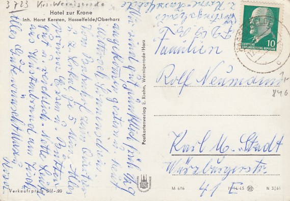 Hasselfelde im Harz Hotel Zur Krone 1961