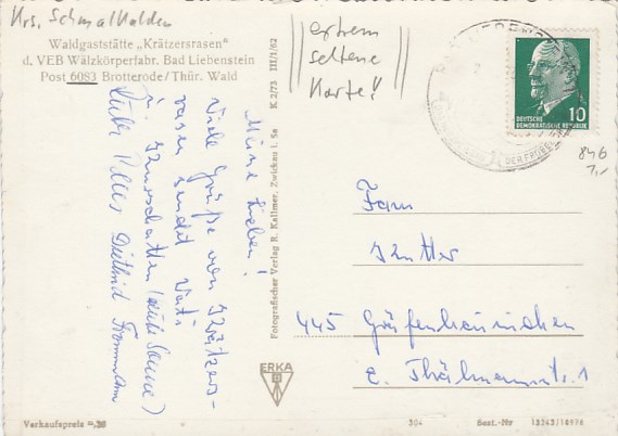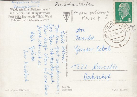 Brotterode in Thüringen Waldgaststätte Krätzersrasen 1962