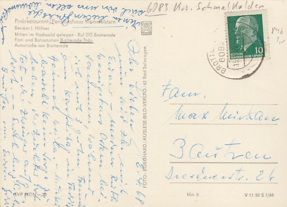 Brotterode in Thüringen Parkrestaurant Mommelstein 1966