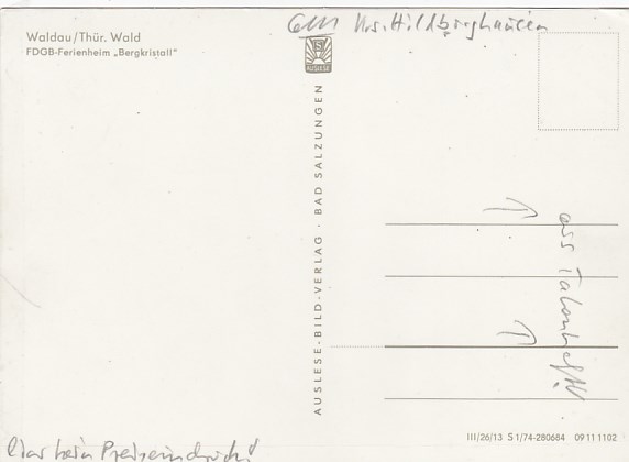 Waldau in Thüringen FDGB-Heim Bergkristall 1979