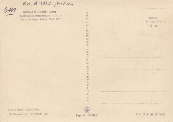 Giessübel Gießübel in Thüringen Gasthaus zum Rautenkranz 1958