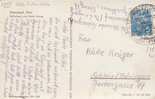 Ebersdorf in Thüringen Kulturhaus und Hotel Krone 1959