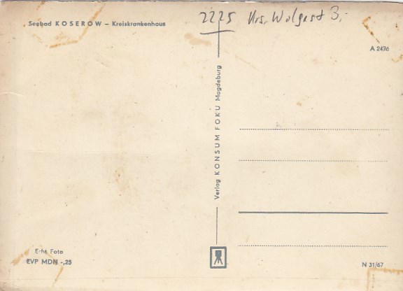 Ostseebad Koserow Usedom Krankenhaus 1967