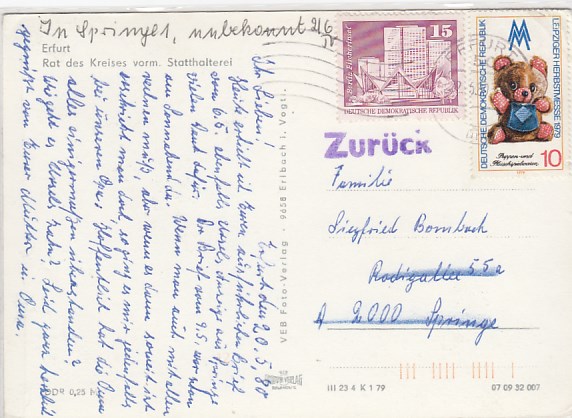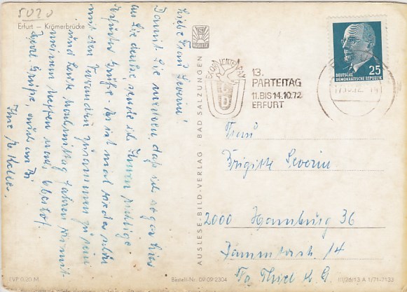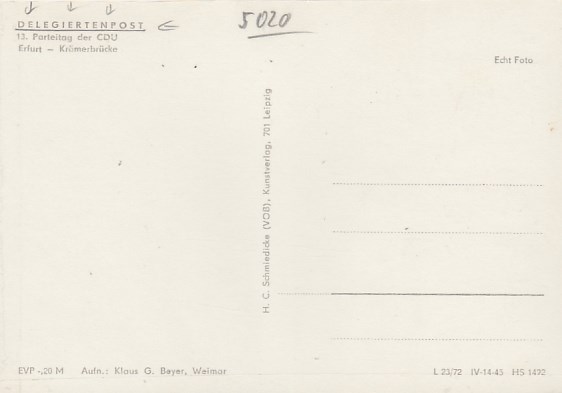 Erfurt Thüringen Krämerbrücke Deligiertenpost 1972
