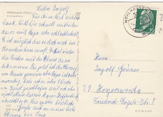 Mühlhausen in Thüringen Krankenhaus Pfaffenrode 1959