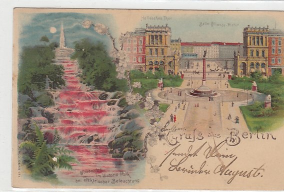Berlin Kreuzberg Victoripark Wasserfall Hallesches Thor Litho 1906