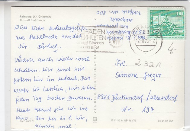 Reinberg OT Stahlbrode Kreis Grimmen Mecklenburg 1975