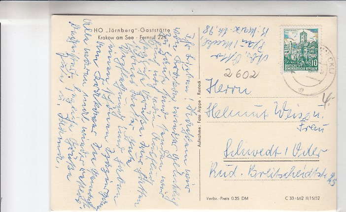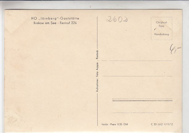 Krakow am See Gaststätte Jörnberg 1962
