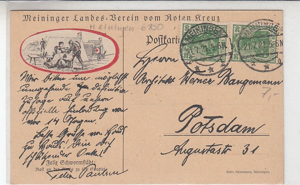 Meiningen Thüringen Künstlerkarte Rot-Kreuz Verein 1921