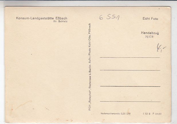 Eßbach Konsum Gaststätte Kreis Schleiz Thüringen 1963