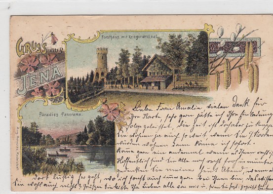 Jena Thüringen Forsthaus mit Kriegerdenkmal und Paradies Litho 1904