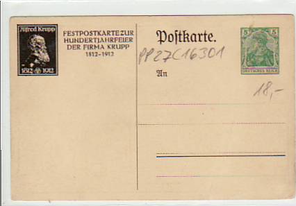Krupp, Adel,Monarchie Privat-Ganzsache Deutsches Reich PP27C1630