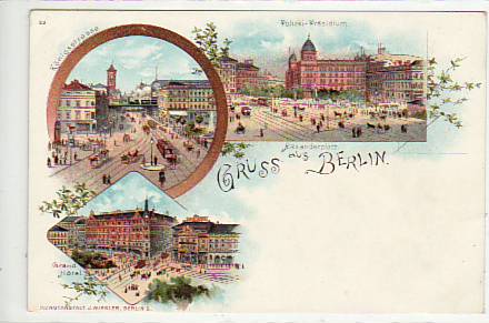 Berlin Friedrichshain Oberbaum-Brücke Litho 1899