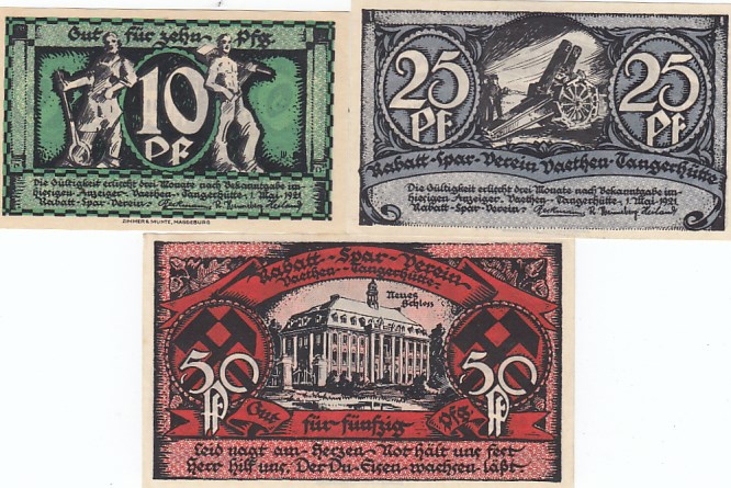 Vaethen-Tangerhütte 3 Scheine Notgeld 1921