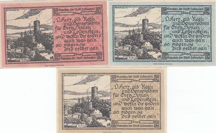 Lobenstein in Thüringen 3 Scheine Notgeld 1918