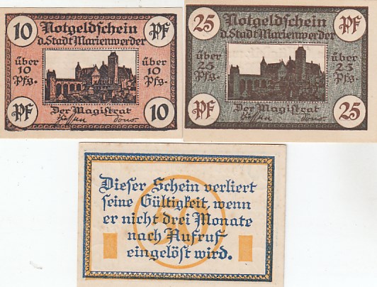 Bialla Ostpreussen 3 Scheine Notgeld 1920