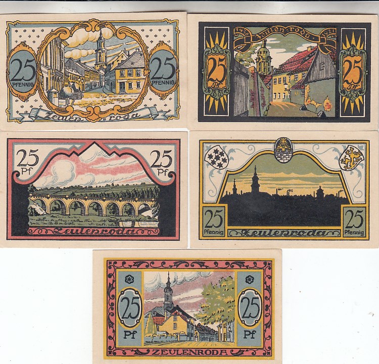 Zeulenroda in Thüringen 5x Geldscheine Notgeld