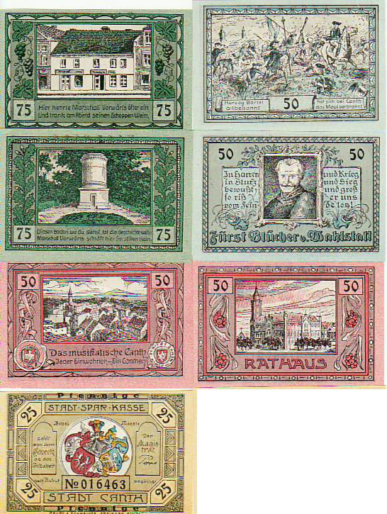 Canth Schlesien 7 Scheine Notgeld