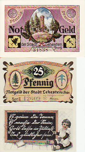 Lehesten Thüringen 3 Scheine Notgeld 1920