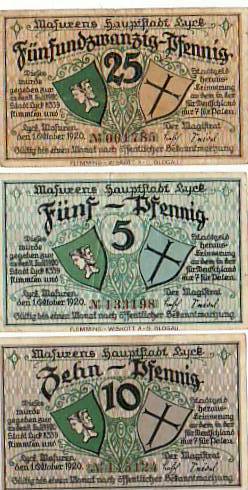 Lyck Masuren 3 Scheine Notgeld 1920 Ostpreussen