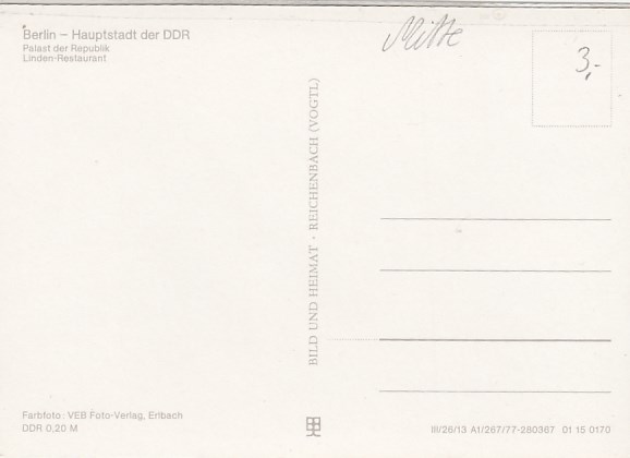 Berlin Mitte Palast der Republik Linden-Restaurant 1977
