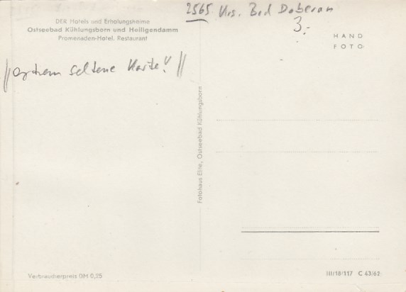 Ostseebad Kühlungsborn und Heiligendamm Promenaden-Hotel Restaurant 1962