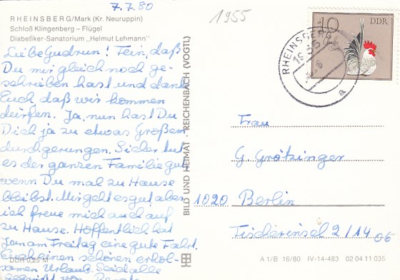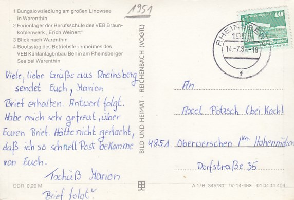 Rheinsberg in der Mark Lindowsee Foto Karte