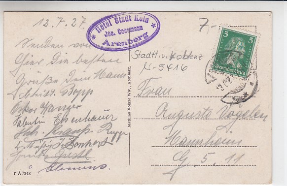 Arenberg bei Koblenz-Ehrenbreitstein am Rhein cca 1925