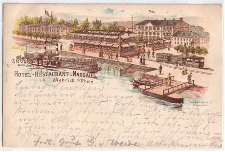 Hotel Restaurant Nassau Biebrich am Rhein Raddampfer 1898 Litho
