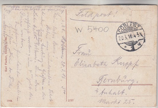Worms am Rhein Sparkasse Feldpststempel ca 1915