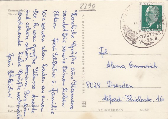 Kamenz in Sachsen Kamjenci Anlaß Stempel Forstfest 1971