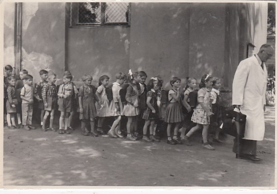 Freital in Sachsen Kinder an der Turnhalle 1959