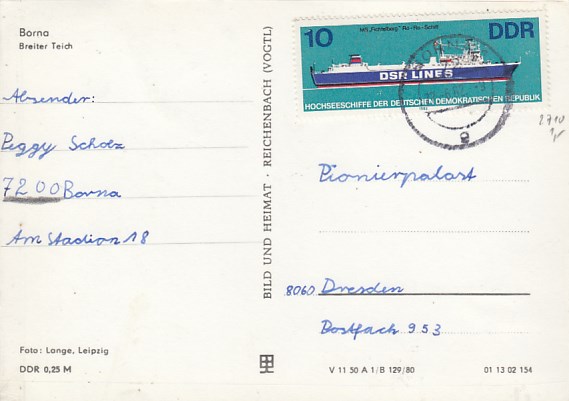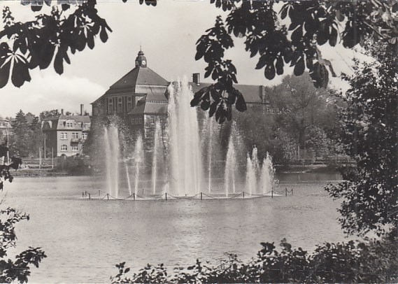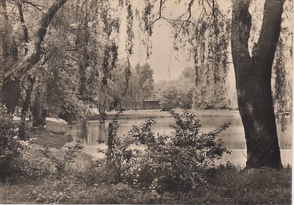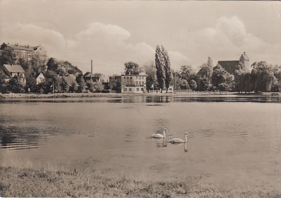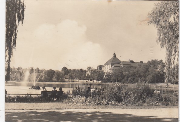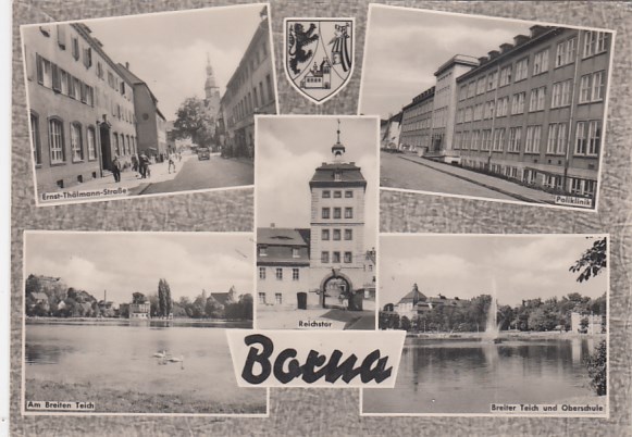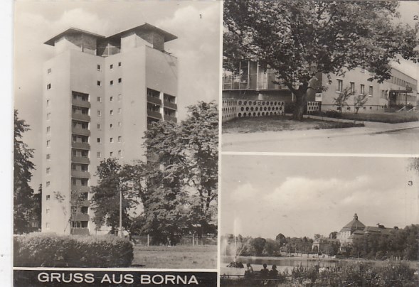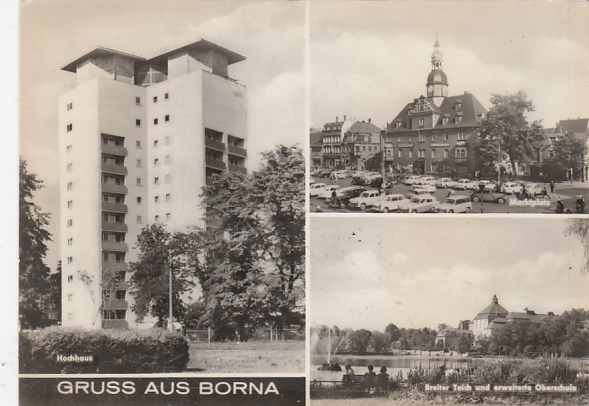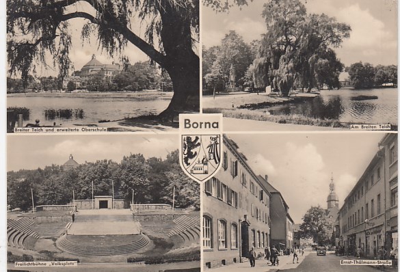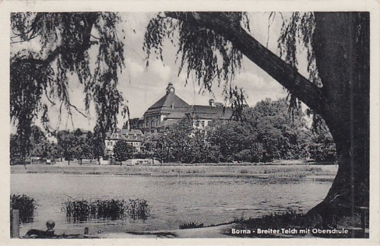 Borna in Sachsen Breiter Teich mit Schule 1962