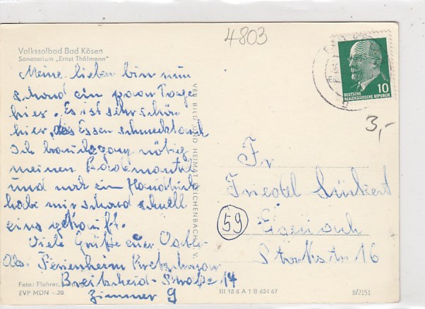 Bad Kösen in Sachsen-Anhalt Sanatorium Ernst Thälmann 1959