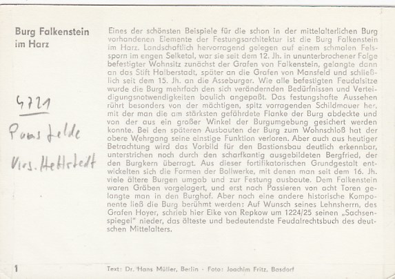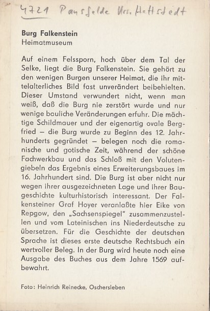 Burg Falkenstein Harz in Sachsen-Anhalt 1965