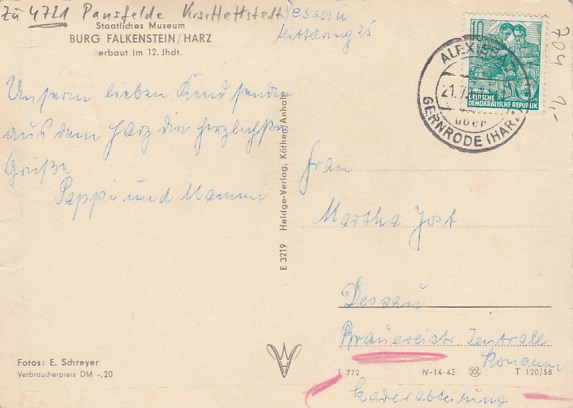 Falkenstein OT Pansfeld Harz in Sachsen-Anhalt 1952